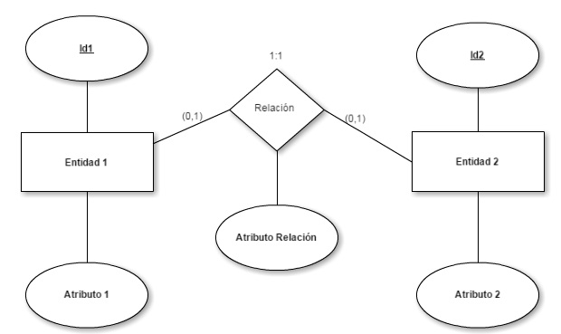 Este caso se aplica cuando la entidad con cardinalidad máxima 1 no es obligatoria, es decir (0,1).